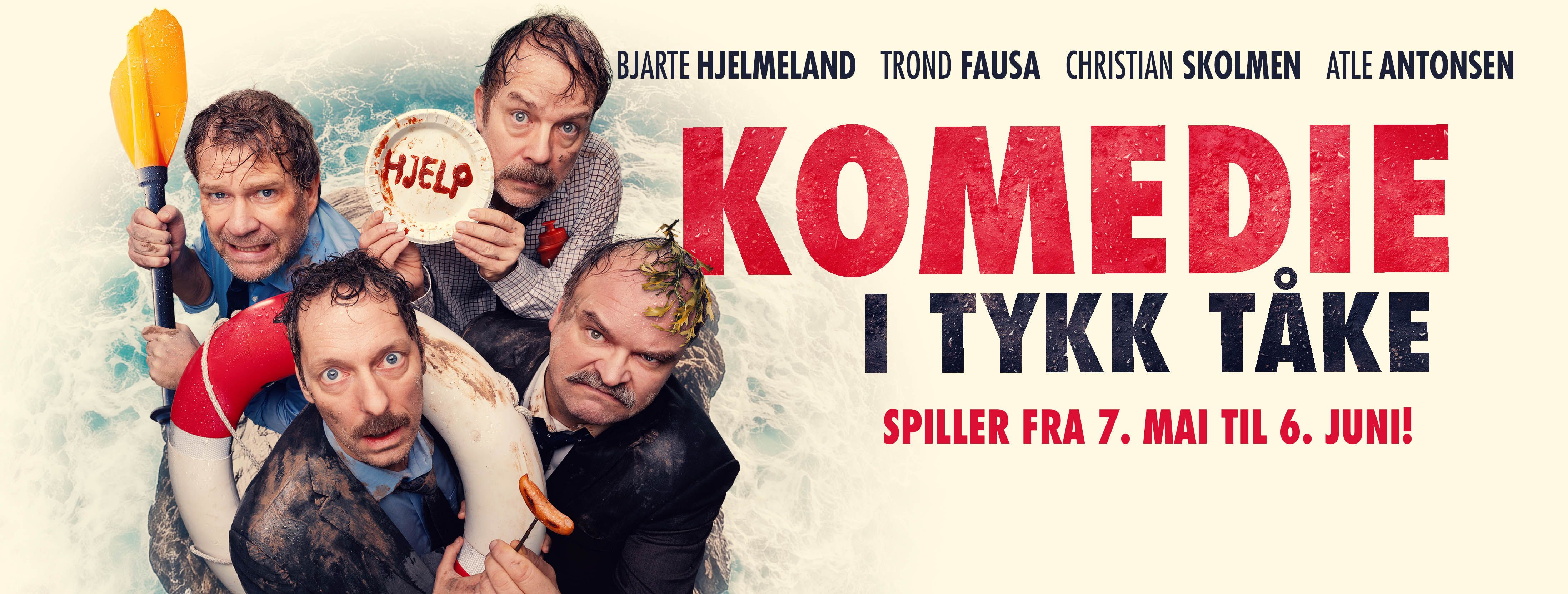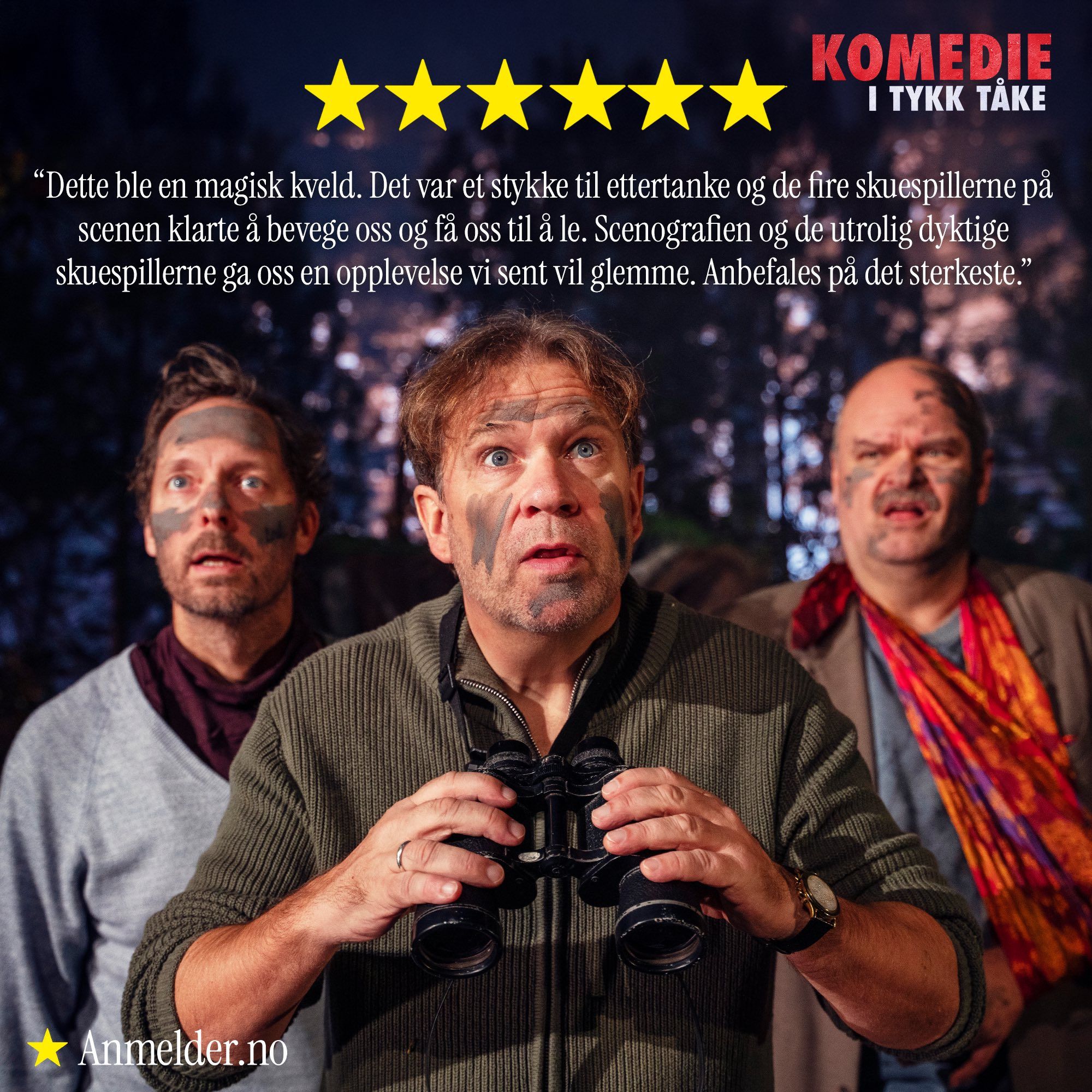 For en eksklusiv kort spilleperiode i Kristiansand:Gjør deg klar for Komedie i tykk tåke – en sylskarp forestilling om lagarbeid som går katastrofalt galt.