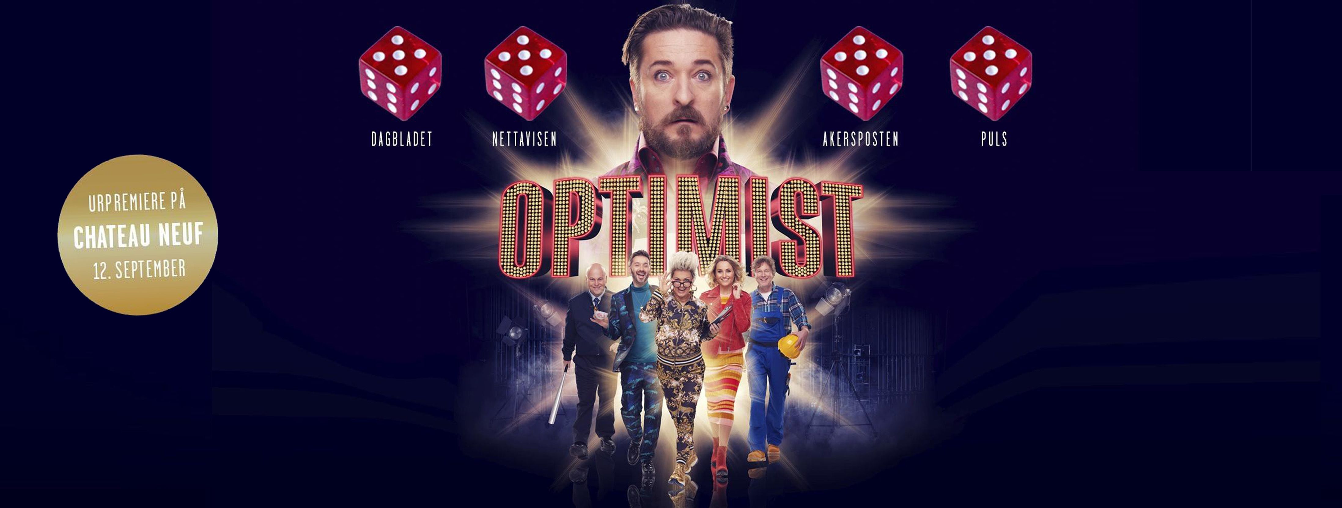 «Min første kjærlighet», «Mil etter mil», «Det er en fin dag», «Do re mi», «Bli bra igjen», «Voodoo», «Adieu» og «Det vakreste som fins». Dette er bare noen av sangene den helt nye musikalkomedien «Optimist» har å by på! Øystein Wiik har skrevet manuset og publikum kan vente seg en ellevill og humoristisk kjærlighetshistorie med storslått scenografi, flotte kostymer, store shownummer – og selvsagt en hel haug av Jahn Teigens legendariske sanger!